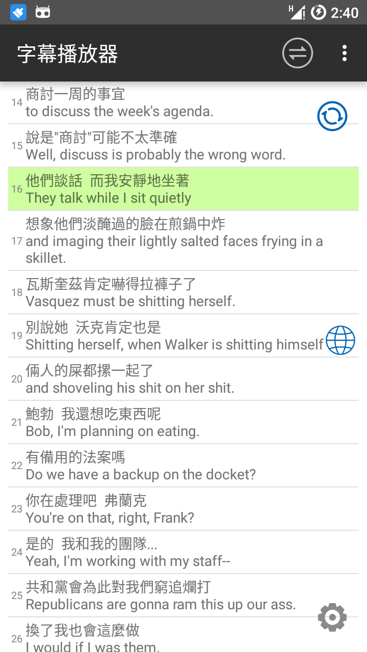 非常棒的语言学习工具,让你可以轻松根据字幕进行跟读,让你随时控制学习,十分的便捷。利用字幕文件中的时间戳信息,方便地做到跟读影视中的对白。