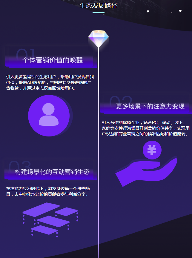 2、去中心化的形式实现广告主信息与用户注意力之间的直接连接;