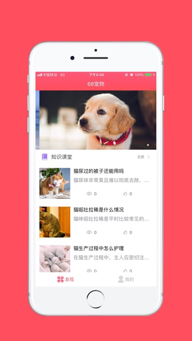 68宠物App 可以给用户带来不一样的养宠体验,用户可以随时随地分享萌宠秀,宠物社交,宠物防丢,宠物挂失,随时随地学习宠物相关信息,购买宠物周边用品和服务,预约线下服务等。