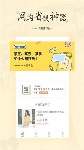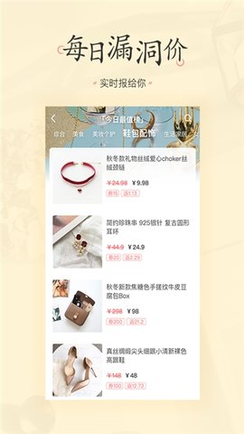 这是一款十分好用的网购应用。每天万款底价商品更新上架,宝贝件件返利永不落下,让您剁手有理。省钱生活就是赚钱!打造你的更加精致的生活体验,需要的用户欢迎来下载吧。