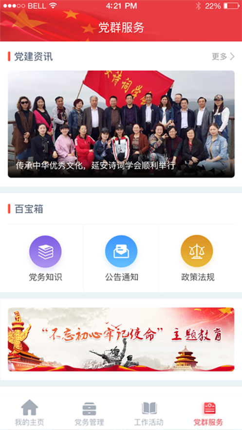 2.新政策法规以及党务管理活动都是通过该软件进行的,让用户可以通过这里方便进行党务活动,提升工作效率。