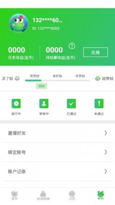 蛙蛙赚app是一款手机的赚钱应用,在应用中,用户可以寻找到多样的任务内容,用户需要按照任务的要求内容进行任务的完成,就可以获取到相应的任务的佣金奖励,实现轻松的手机赚钱方式体验,如果感兴趣的话就来下载吧。