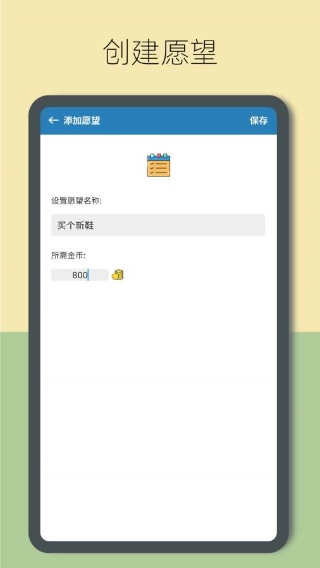 2、通过设定愿望商品实现自我的激励,完后后还能获得奖励;