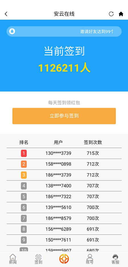 安云在线app是一款可以通过阅读赚钱的软件,APP为用户提供各方面全方位手机资讯,可以在安云在线阅读到有关娱乐、科技、财经、游戏等各方面的新闻,登录之后就可以开始计算阅读次数和时长,通过签到也可以领取红包,每天签到人数众多。