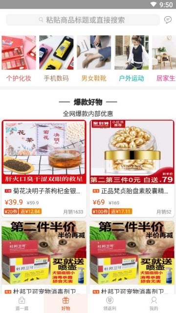 1、可以获得非常多的商品返利,汇集了全网的优质商品全部都能搜索;
