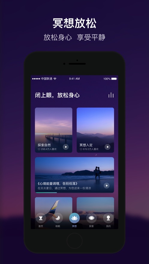 c、放松的冥想舒缓你的紧张的神经不再紧绷使得轻松解压助眠。