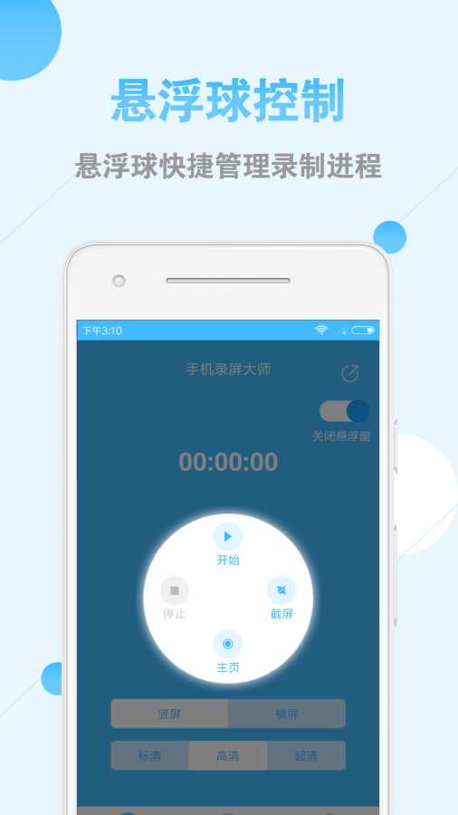 b、通过悬浮球可以悬浮于各个应用程序灵活的进行录屏操作;
