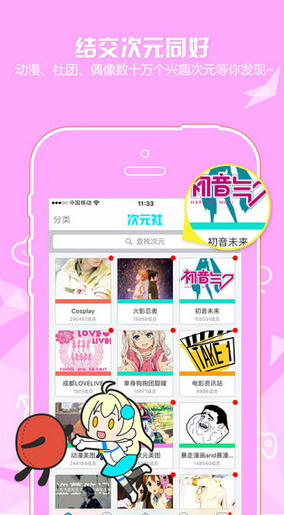 2、结交次元好友,动漫社团等多个次元部落等你发现;