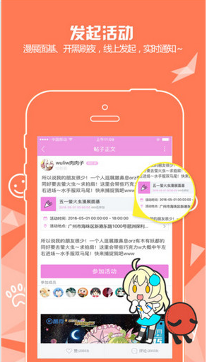 3、发起活动,漫展开黑刷夜等线上发起即时通知;