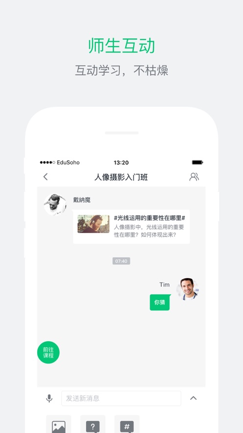1.随时进行师生互动,通过云课堂移动端随时将自己的不解发送给老师,跟老师进行即时互动;