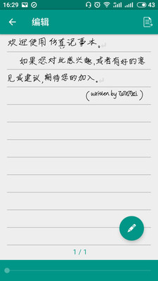 飞真记事本是一款文字记录手机app,在屏幕上手写一个大字,就能够快速缩小刻印字里行间,其能够模拟您真实笔记本的书写习惯,有需求的用户快来下载吧!