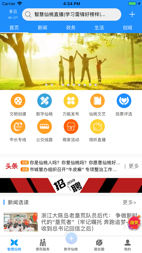 3.新闻以及政务和生活频道等,让大家了解仙桃本地服务,关注最新直播功能,进行热门投票和评选等。