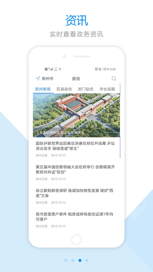 3.关注郑州市动态新闻本地热点以及最新政策一一查看,了解部门动态,通过市长信箱将自己喜欢的内容分享给大家,了解最新资讯。