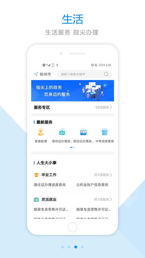 2.最新生活服务平台以及办理进展,在这里查看一些有用的政务服务,快速进行客户端办事,查看最新办事进展以及实时查看办事进度;