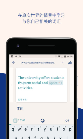 1.这款软件提供的科学学习方式,从各种电影书籍以及报纸中为您带来一些经典的语言学习方式,整合一些有用的单词例句供您学习;