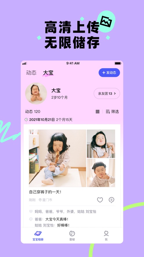 蛋啵app是一款使用美颜相机特效的儿童应用,这里自拍功能十分新颖,一键上传宝宝照片视频,也是可以随时回顾宝宝成长故事,加密保存避免宝宝影像丢失,每一次都是会保留图像高清画质。