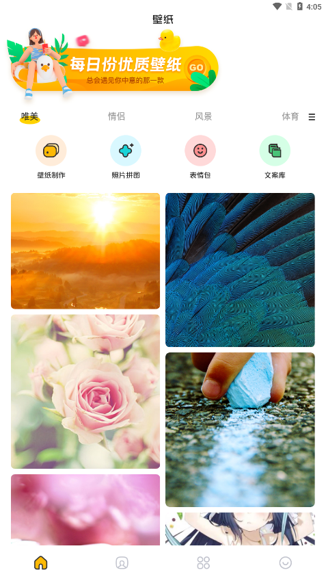 1、这里提供到的壁纸种类丰富,按照需求自定义来线上寻找,也是可以自定义制作壁纸的;