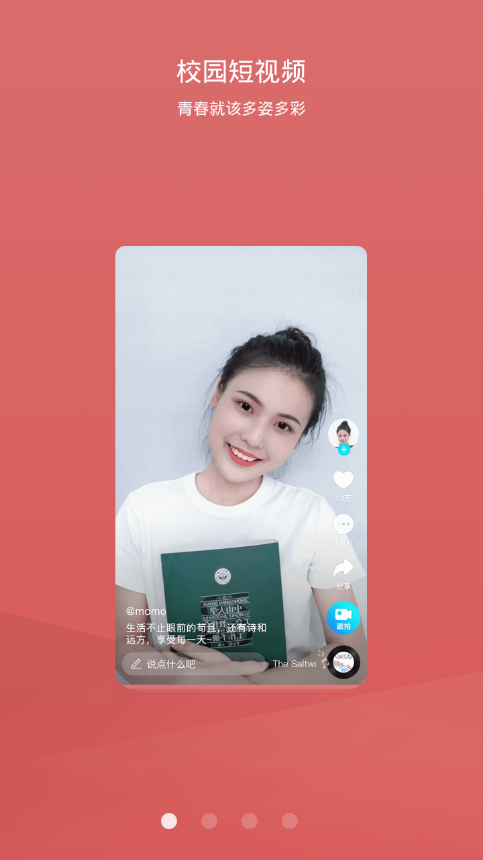 这是一款致力于发掘校园音乐、展现校园生活的短视频APP。在这里你可以认识附近有才有趣的小伙伴,记录自己学生生涯中各种有意义的时刻,让青春不留白,由你更精彩!