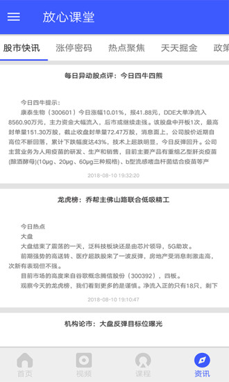 安卓下载 大小:33.01MB 下载:542次 放心课堂 学习教育 支 持:安卓 分 类:应用软件 大 小:33.01MB 版 本:1.1.1 下载量:542次 发 布:2022-04-13 13:13:18 安卓下载 #放心课堂截图 #放心课堂简介 这是在投资者教育行业的一颗巨星,目标人群定位于喜欢投资炒股的用户,用户可方便快捷的查看财经信息,也可观看在线直播投资经验教学来收获经验。投资理财爱好者可下载来体验。放心课堂app特点:1、可观看在线直播投资课程,大佬为您倾情讲述;2、海量精品课程供您学习;3、最新最及时的投资资讯,让您把握良机;4、界面美观易用,操作便捷。放心课堂app介绍:这是一款能将课堂装进口袋的投资教育软件,让您随时随地了解最新投资动向,名家观点让您对投资的理解更进一层。喜爱投资的你快来放心课堂学习吧!