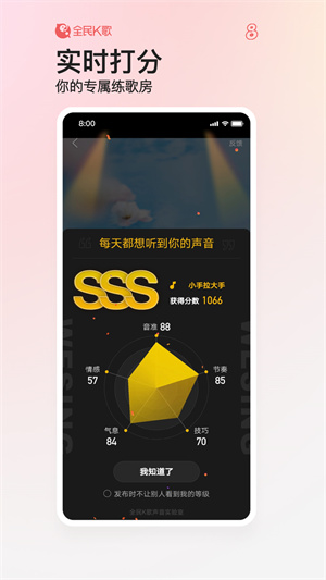 全民K歌app是一款在这里可以让你发挥自己更好演唱技能的软件,掌上也是可以帮你来下载更多的伴奏,随时直接让你对演唱的歌曲进行上传,为你为吸引更多的粉丝,还有修音的功能让你慢慢来调节,功能强。