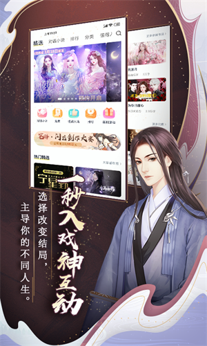 品类齐全:古风、现代、架空、生存、二次元、穿越、冒险、校园、古代、明星、后宫,养成、品类繁多,等你宠幸。