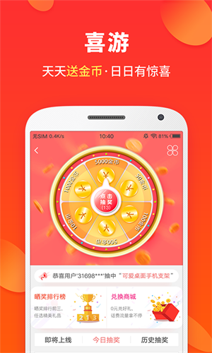 【喜游】购物返利还能玩游戏,100%中奖,还有大量优质商品,天天免费抽奖,惊喜不断等着您。
