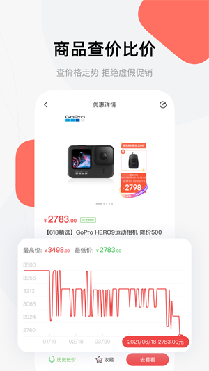 1、「历史价格」展示商品180天历史价格曲线,识别虚假打折促销;