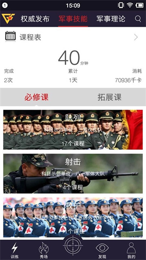 ·军训学生可以采取用户创造资源模式,上传晒出自己的训练成果,分享自己的训练心得,关注好友的训练动态。