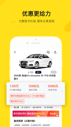 【首付支付】支付首付租金后即可等待提车,期间为您办理保险及上牌手续;