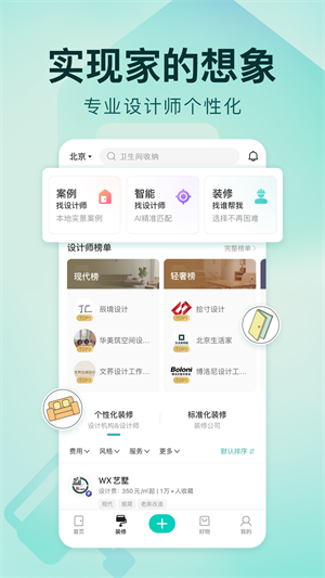 汇聚行业内优秀的室内设计师,专业个性化服务帮你一起实现家的千万种可能。