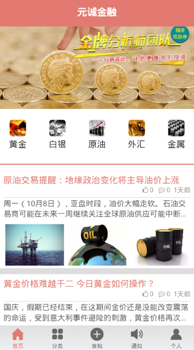 元诚金融app是专业的金融资讯平台应用,多种金融资讯在这呈现,为你讲述黄金、原油、外汇、白银等期货行情,可实时了解到最新的行业动态。