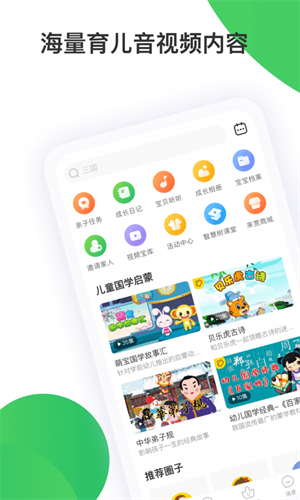 提供海量的优质的针对幼儿发展需要的音视频学习资源库,随时随地随需信手拈来,寓教于乐,使宝宝学习更有趣!