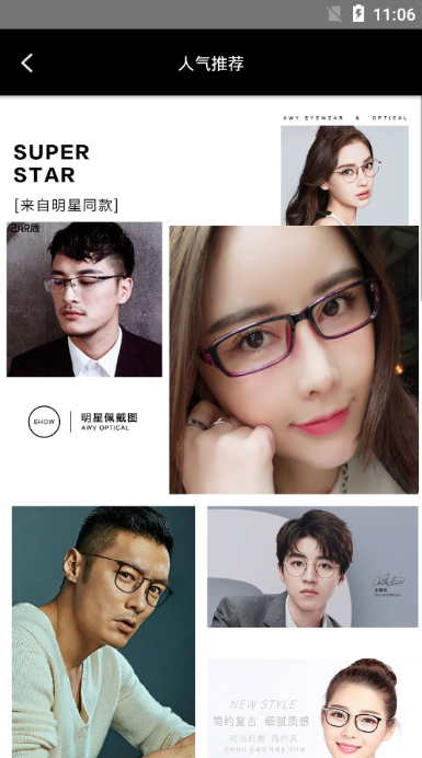 2、眼镜品类众多,时尚款,明星同款,等等任您挑选;