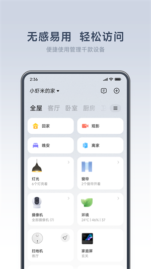 米家app是你家里的智能硬件管理平台,不管是小白还是网络高手都能快速掌握的智能设备平台,还可以进行个性定制,按照自己的使用习惯,设置个性化的智能场景,小白用户都能快速掌握的智能设备连接和操作,智能设备间可以互联互通。