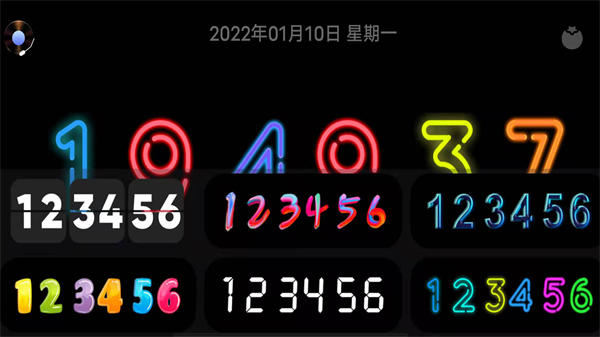 有超酷炫时钟主题,如复古时钟、电子时钟、辉光管、fliqlo翻页字体、炫彩时钟、彩虹时钟、极简翻页时钟等;
