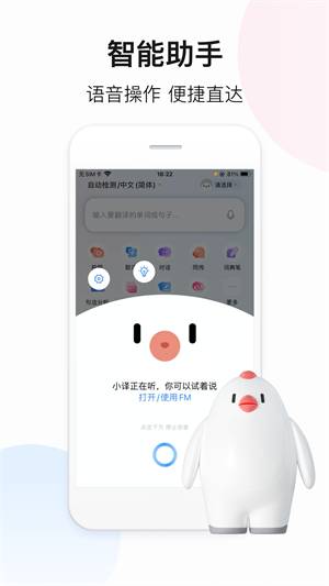 - 语音会话翻译:与外国人无障碍实时沟通,支持中、英语音输入。
