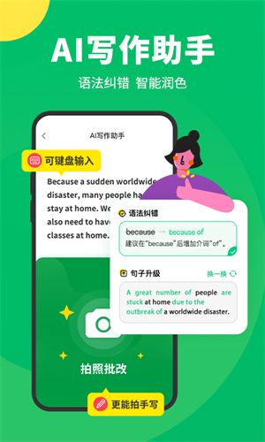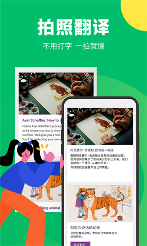 -拍照翻译:图书、试题、路牌、菜单、广告单…随手拍照,及时获取翻译结果。