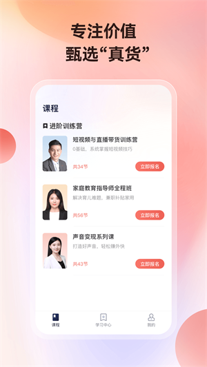 3、讲真app的软件页面设计的非常简约大方,各种课程内容也都能快速方便的找到。