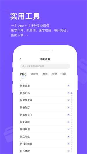 4. 实用工具:包含相互作用、配伍禁忌、医学计算公式(800+)、临床路径、抗菌谱查询等,临床决策更高效。