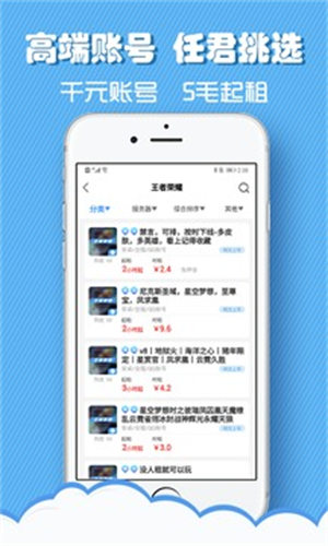 2、这里游戏账号十分轻松让你来找到,租用的账号都是高质量的,免费给你寻找畅玩;