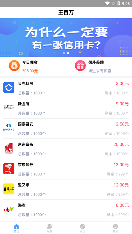 王百万app是一款适合有闲暇时间的用户去实现网赚的应用,无数海量真实任务,等你来挑战完成,完成一定数量后,还有额外奖励,动动手就能赚钱,快来体验吧。