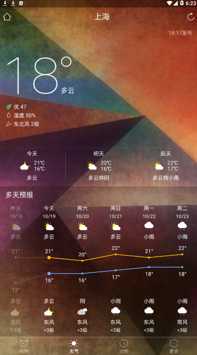 这是一款小巧实用的闹铃应用,体积小功能强大,用户可进行个性化的闹铃设置。应用内还集成了众多实用功能,如计时,天气资讯的查看。喜欢的小伙伴快来下载体验吧。
