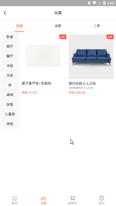 这是一款全新的家具租赁服务平台应用,用户可轻松的通过应用,购买或是租赁到全新或是二手的家具,平台提供了信用评估及分期付款的功能,为您的购买或是租赁减轻了资金压力。快下载体验吧。