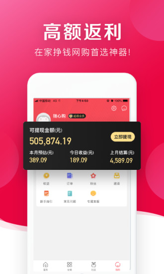 随心购app是一款网购省钱利器,大额优惠券搜索即得,下单即可抵扣,优惠多多。各类精选宝贝任您挑选,分享商品至好友,还可获得高额返佣。快来下载体验吧。