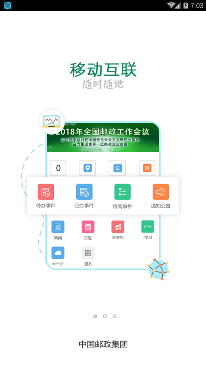 邮我行app是中国邮政集团掌上办公官方应用,包含了众多的便利功能如网点查询,运费估算,公文审批、邮箱、新闻、通讯录、IM及时通讯、打卡、会议助理、网盘等功能。极大程度的提高了办公效率。