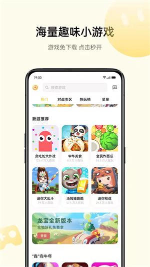 oppo小游戏3.6.0是一款十分轻量化的游戏平台,在这款应用中大家可以得到很好的游戏玩法,所有平台中的游戏都是不需要进行下载,大家可以直接选中你喜爱的游戏资源,点开即可进行游戏体验了,欢迎来下载吧。