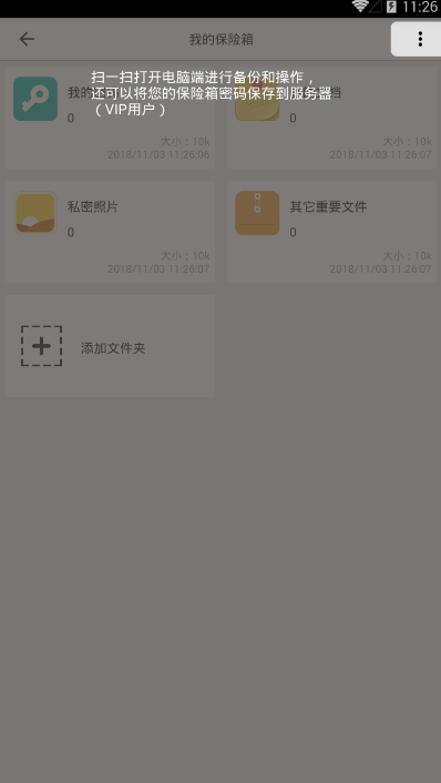 1、各种密码,文件,照片都可保存到保险箱中;