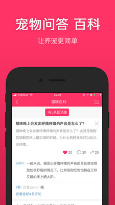 这是一款宠物社区应用,为爱宠人士提供宠物领养的服务,实现爱宠人群的精准社交,领养宠物,宠物的救援等另有宠物百科,宠物商城。一切关于宠物的信息都可以在这里找寻到。爱宠人士快来下载使用吧。