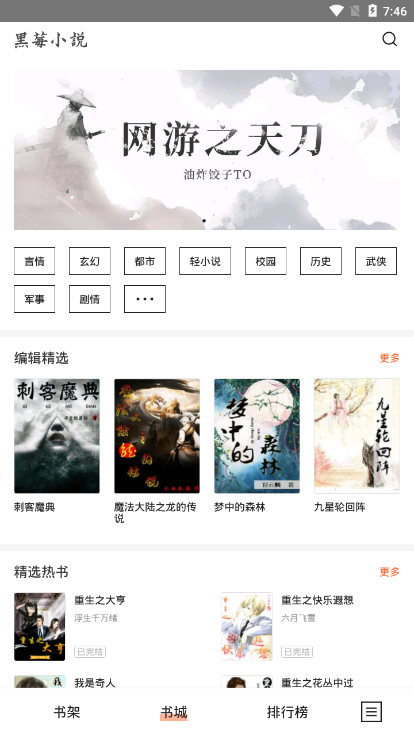 黑莓小说app是一款好用的小说阅读应用,提供丰富了小说资源,各种类型都有涵盖,支持图书收藏、缓存、书签收藏、自动记忆阅读位置。快来下载使用吧。