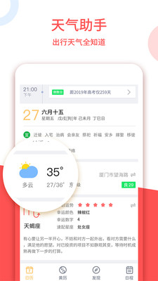这是一款实用的黄历应用,应用界面设计清晰直观,可查看经典日历与传统黄历,随意切换十分便捷,另有实用的天气助手,出行天气一目了然,还可添加日程管理代办事项等。快下载体验吧。